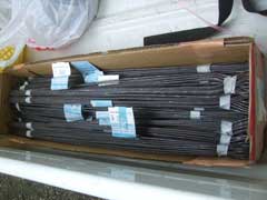 波板の設置部分を少し掘り下げ、波板の高さを調整し、次にくいで仮止めをしました。