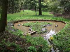 前回の作業により修復されたひょうたん島。静かな谷で池から流れ出る水の音は、隊員の疲れを癒してくれました。